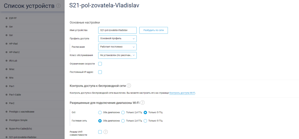 Отключение доступа к 2.4 ГГц сети в настройках конкретного устройства на Keenetic