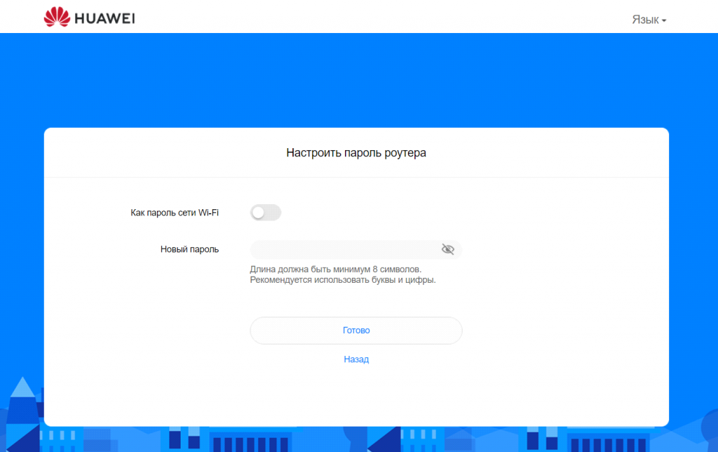 На следующем экране Вам предложат поменять пароль от Вашего роутера. Не забудьте его! Далее нажмите на кнопку Готово.