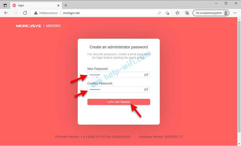 Сразу после входа в веб-интерфейс система предложит установить пароль администратора роутера. Этот пароль будет использоваться для защиты настроек. Его нужно будет вводить каждый раз при входе в веб-интерфейс роутера. Придумайте какой-то пароль и укажите его в двух полях.