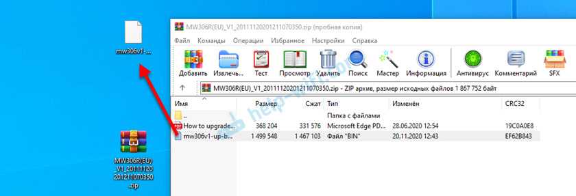 Если на сайте есть новая версия – загружаем ее. Открываем загруженный архив и извлекаем из него прошивку. Файл с расширением .bin.