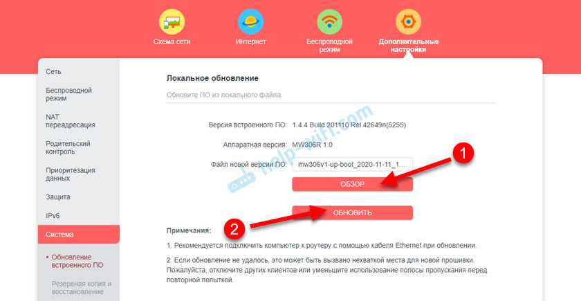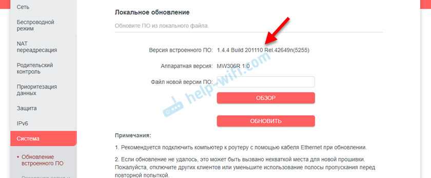 Важно! На момент обновления прошивки рекомендуется подключиться к роутеру по кабелю. Чтобы обновить прошивку, нужно сначала открыть в настройках роутера страницу «Обновление встроенного ПО», которая находится в разделе «Система»