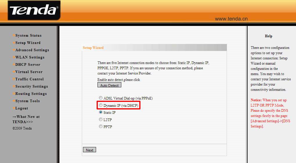 Выбрать нужно “Dynamic IP (via DHCP)”