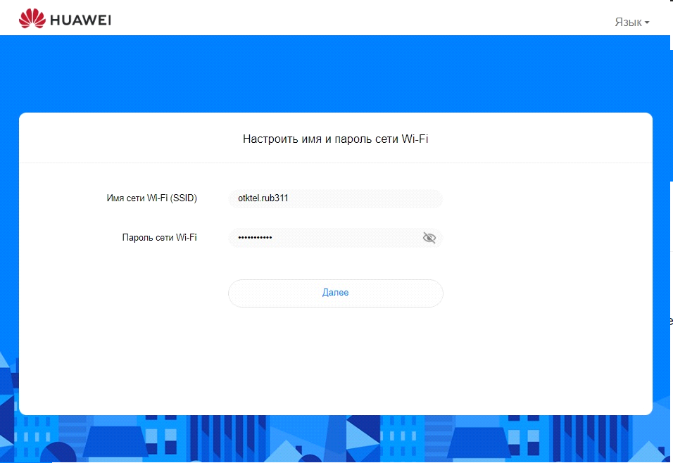 Далее Вам предложат ввести Имя Вашей Wi-Fi сети и пароль для нее.