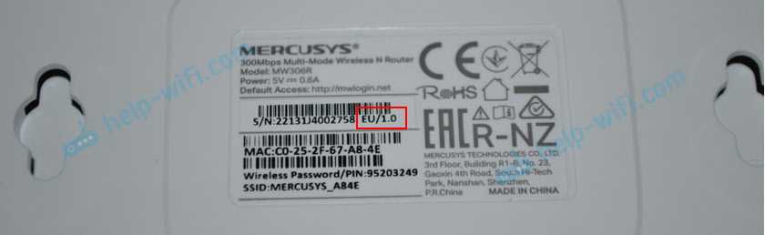 Дальше смотрим какая у нас аппаратная версия роутера и для какого региона. RU, или EU. Это можно посмотреть на корпусе роутера (наклейка снизу).