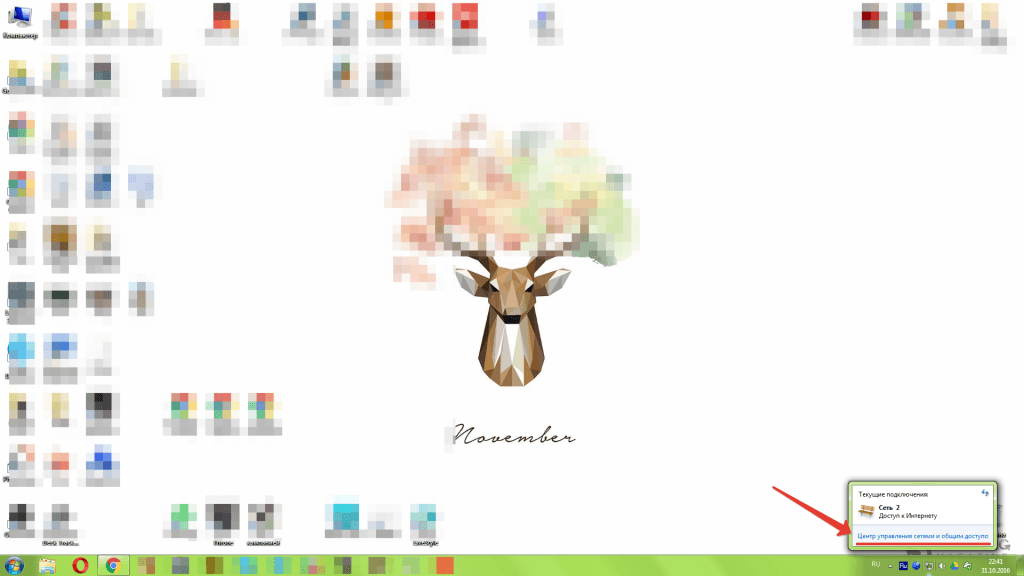 2. Нажмите на иконку левой кнопкой и выберите «Центр управления сетями и общим доступом»