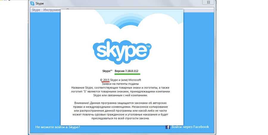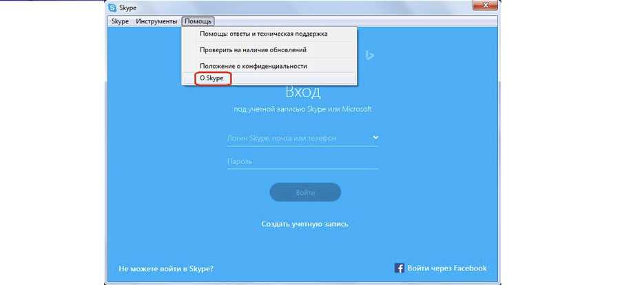 То же самое можно осуществить, зайдя в «Помощь» в окне Скайпа, а далее — выбрав «О Skype». Там есть возможность посмотреть версии.