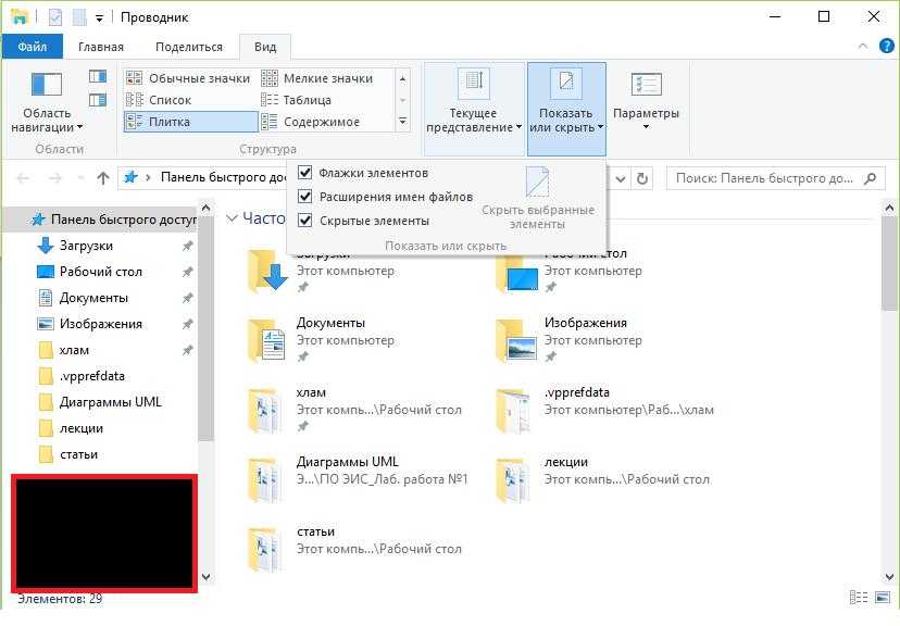 - В категории «Показать или скрыть» поставить галочку напротив скрытых элементов: