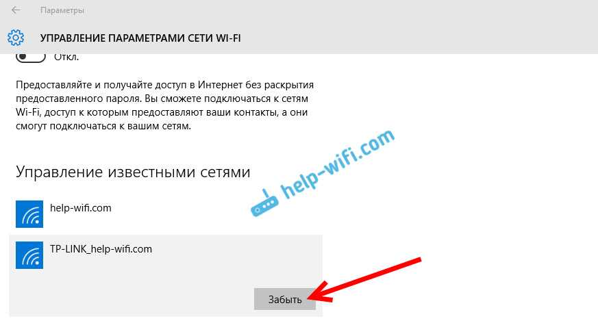 Выберите сеть к которой не удается подключится и нажмите на кнопку Забыть.