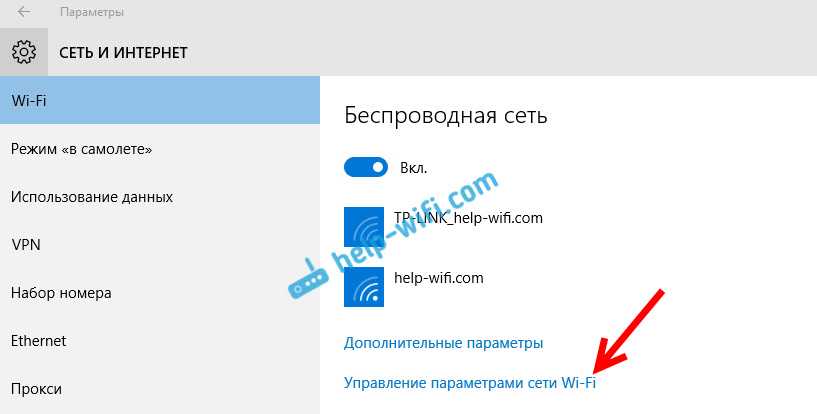 Дальше, на вкладке Wi-Fi выберите Управление параметрами сети Wi-Fi.