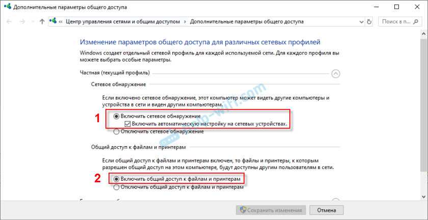 - И установить флажки напротив строк «Включить сетевое обнаружение» в каждом из блоков