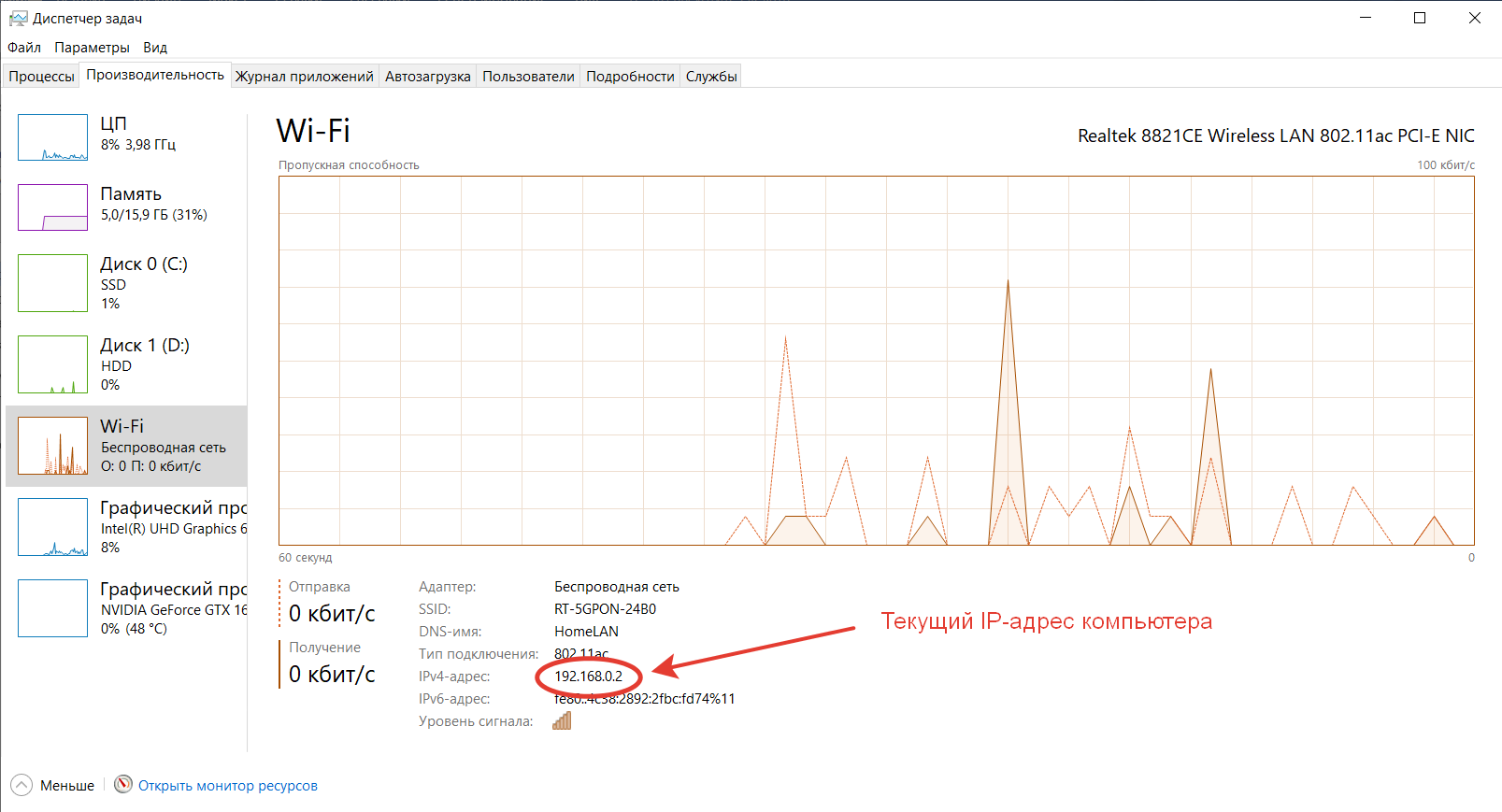 Посмотреть ip адрес компьютера можно по этой инструкции.