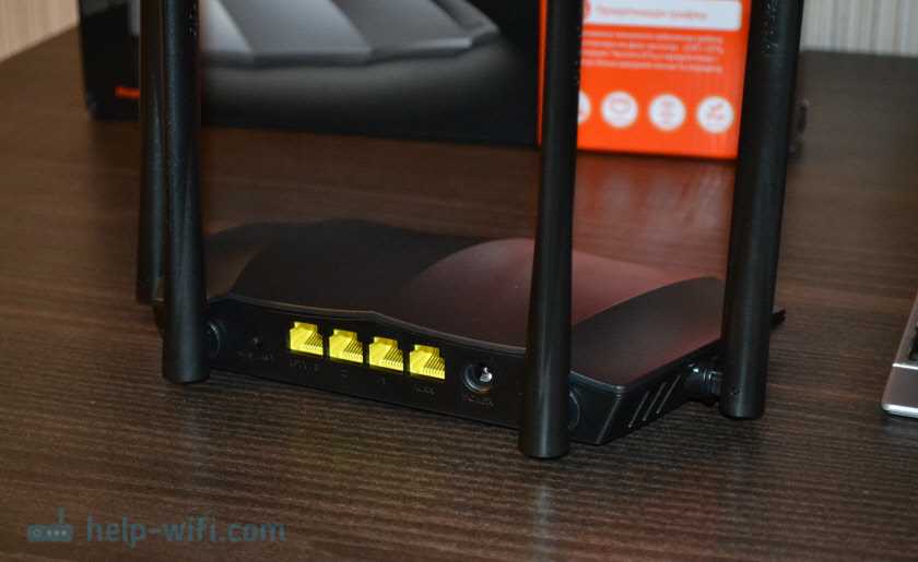 Чтобы подключить роутер Tenda AC10U к интернету, нужно внимательно посмотреть на подписи под сетевыми разъемами. Все они одного цвета и отличаются только обозначениями.