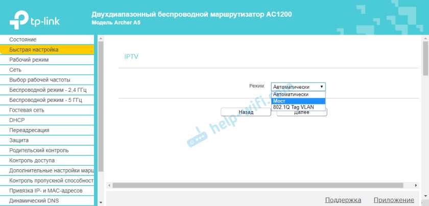 Если необходимо, сразу задаем настройки IPTV на TP-Link Archer A5. У меня эта услуга не подключена. Оставляю автоматические настройки. О настройке IPTV на роутерах TP-Link я писал в отдельной статье.