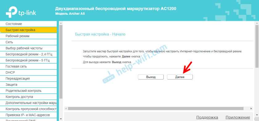 Откроется меню «Быстрая настройка». С помощью этого мастера быстрой настройки можно полностью настроить маршрутизатор. Нажмите «Далее».