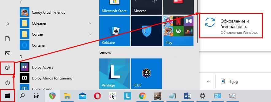 У десятки кликаем «Пуск» – «Параметры» – «Обновление и безопасность».