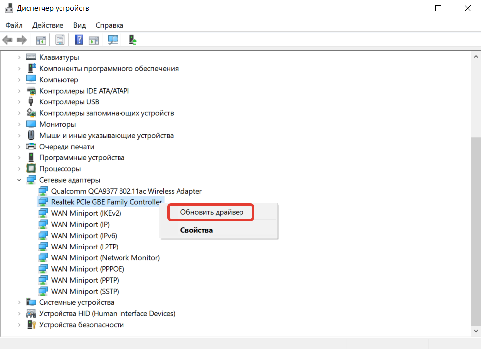 - В контекстном меню выбираем пункт «Обновить драйвер».