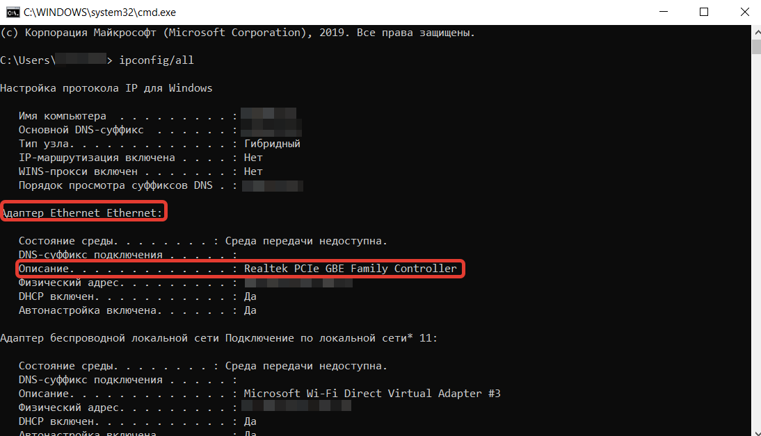 Сперва потребуется выяснить, как называется физический сетевой адаптер. Для этого: