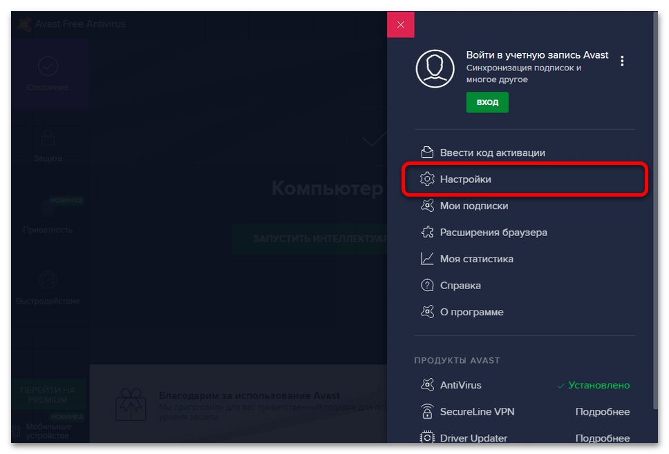Антивирус можно отключить в самих настройках. Для отключения защиты брандмауэра: