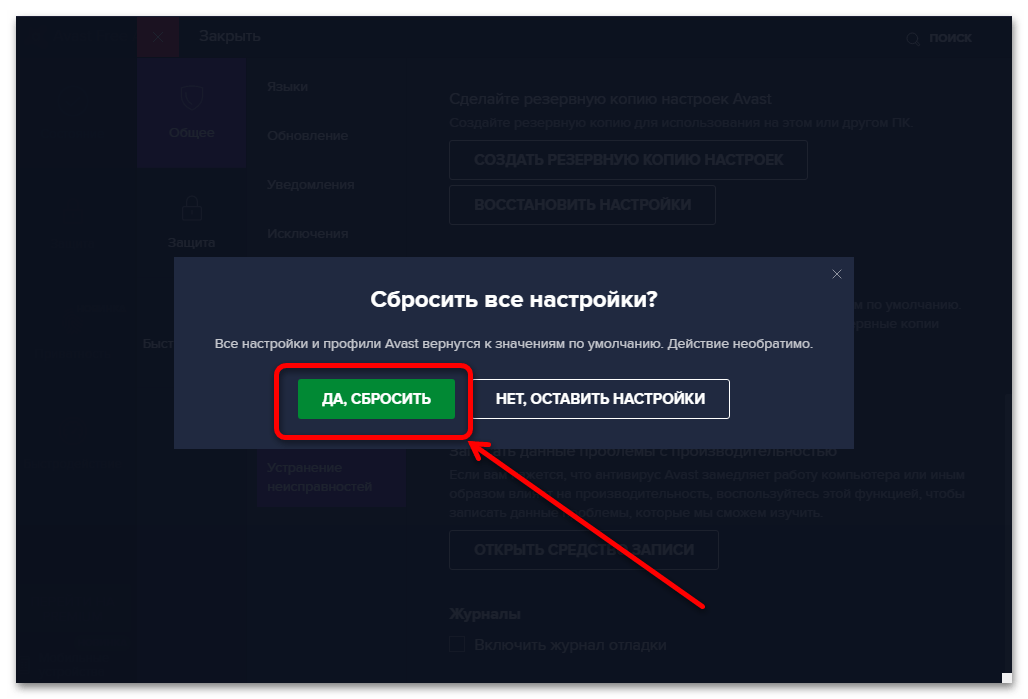 Воспользуйтесь разделом «Общие», где выберите вкладку «Устранение неисправностей» и в ней щёлкните по кнопке «Вернуть настройки по умолчанию».