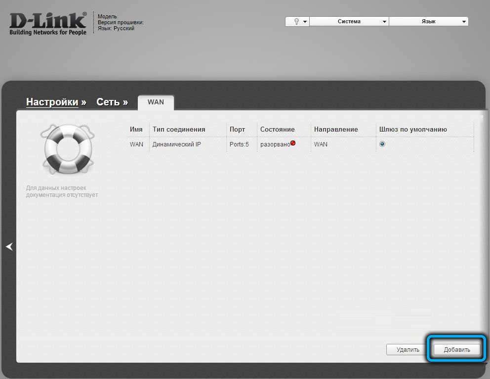На странице расширенных настроек в интерфейсе роутера в разделе «Сеть» выбираем пункт WAN и жмём кнопку «Добавить». Дальнейшие действия будут зависеть от используемого протокола.