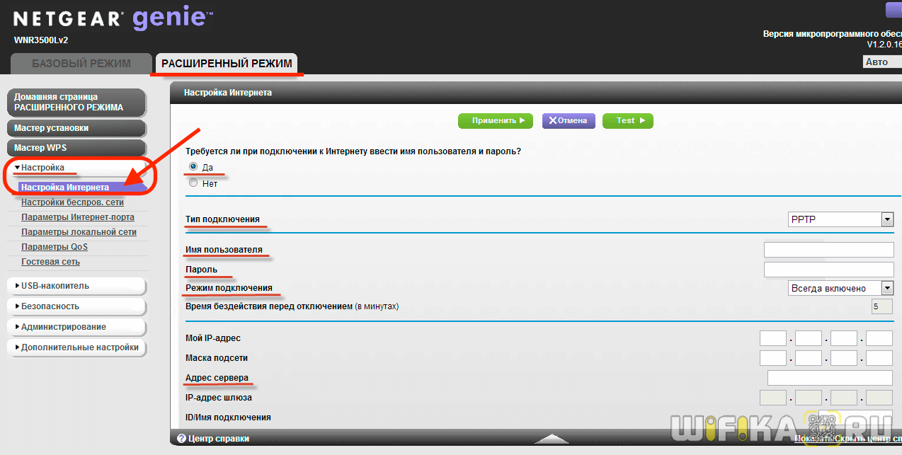 Такой тип используется для подключения к Билайн. Для настройки L2TP на Netgear R6300, Вам надо перейти в раздел «Интернет»:
