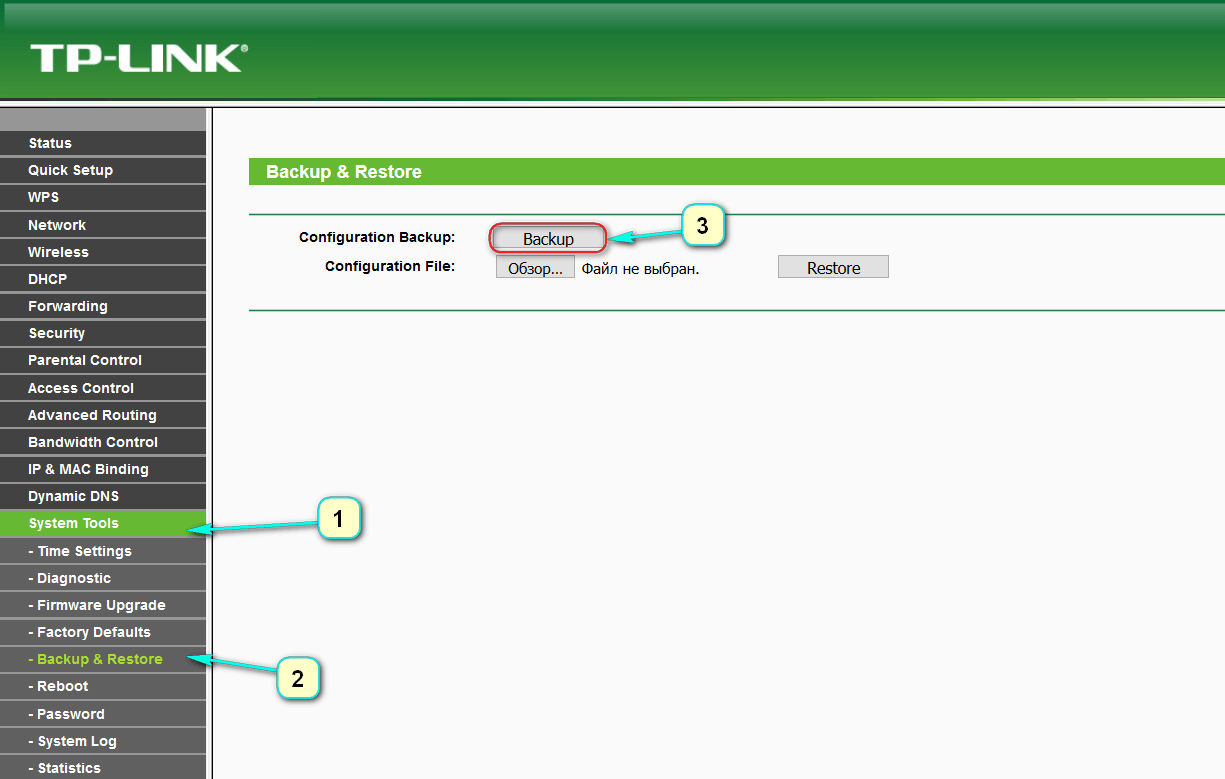 Алгоритм сохранения в файл настроек маршрутизатора Tp-Link