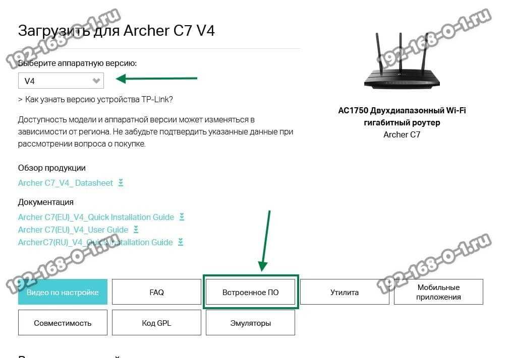 Откроется страничка, в которой надо будет выбрать свою версию (у меня это V4) и нажимаем на кнопку «Встроенное ПО»:
