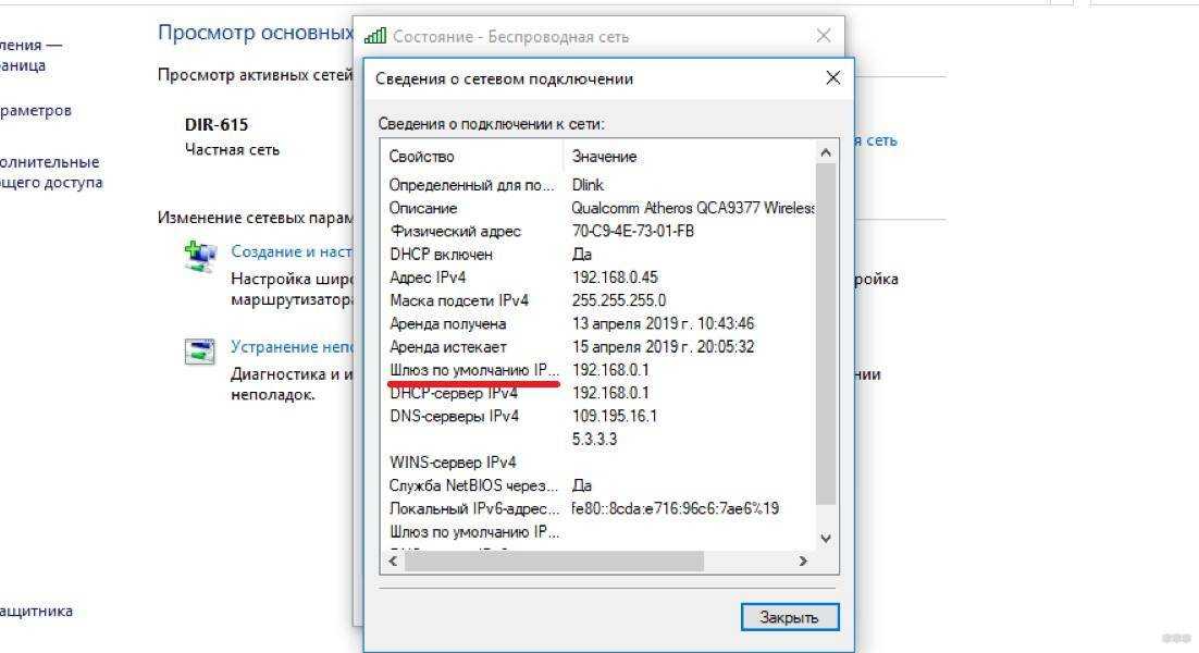 - В строке «Шлюз по умолчанию…» указан нужный нам параметр.