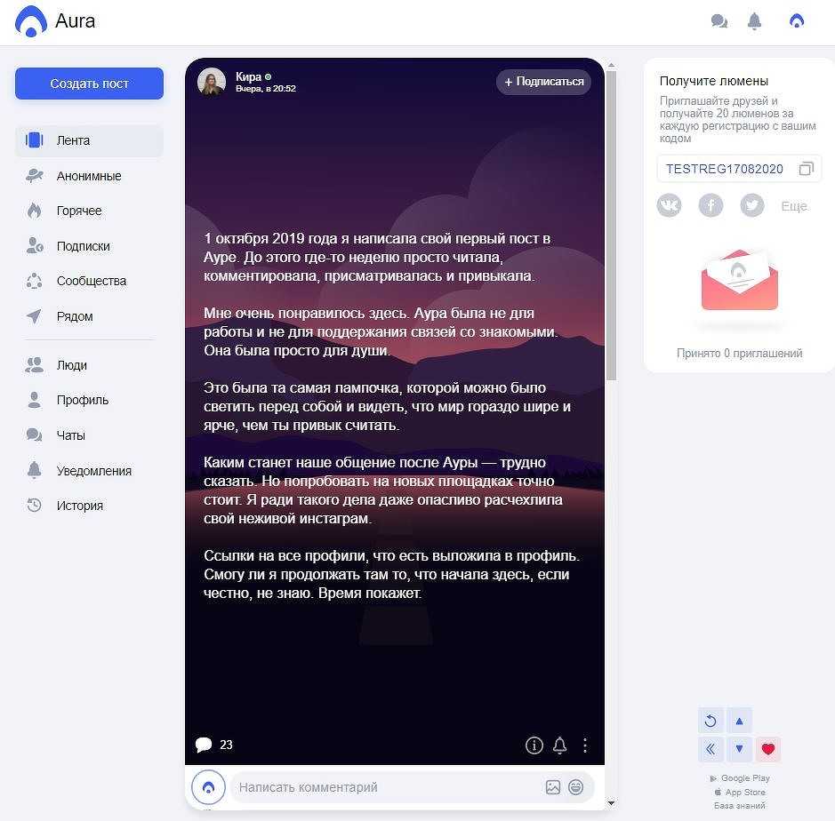 Из-за того, что соцсеть пока работает в закрытом режиме, к ней возник повышенный интерес – в соцсетях возникло много запросов, где взять инвайт в «Ауру». На популярных сайтах продаж товаров и услуг даже появились объявления о продаже доступа к сервису.