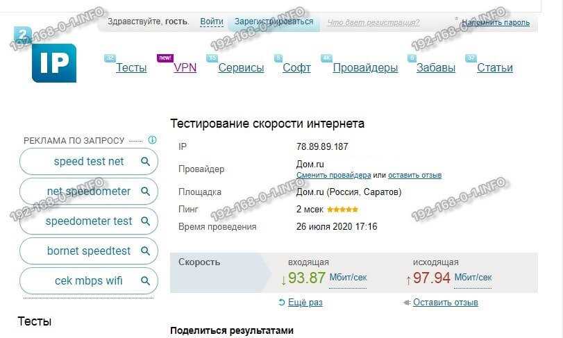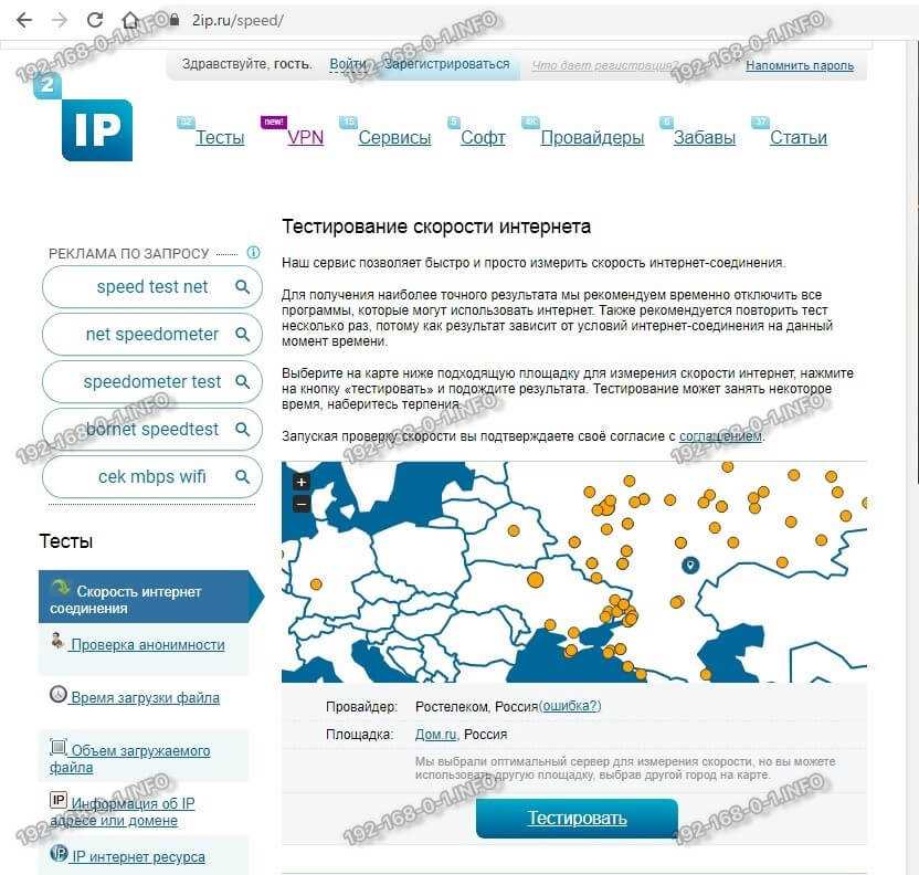 Проверка скорости Интернета Онлайн