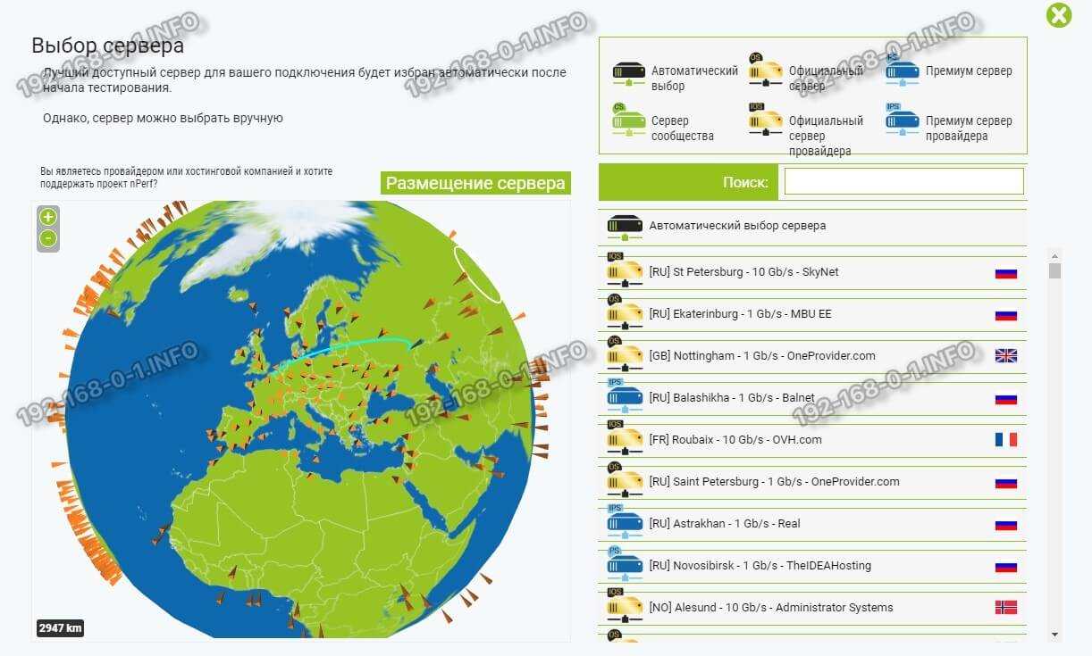 Выбирайте в списке доступных тот тестовый сервер, который будет наиболее близкий к Вашему географическому положению.