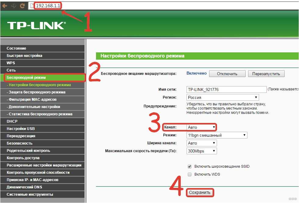 Решить вопрос можно переходом в настройки маршрутизатора через веб-интерфейс. Там следует перейти во вкладку «Беспроводная сеть» и найти пункт «Канал». Можно выбрать «Авто» или один из предложенных – главное, чтобы он отличался от установленного ранее.