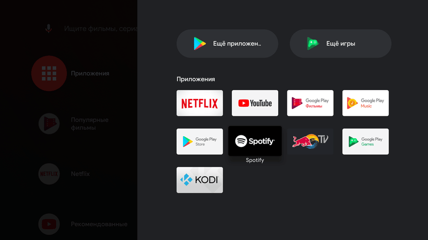 Интерфейс программы-сервера Kodi