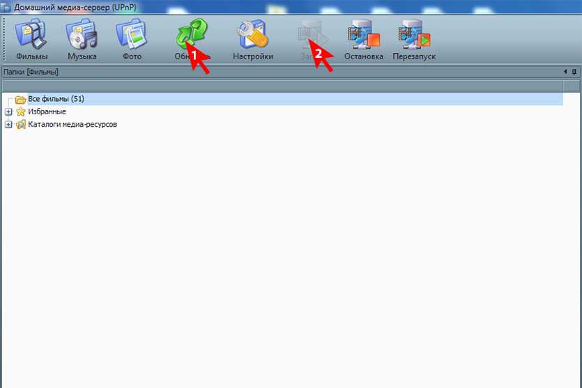 3. Обновляем медиатеку и запускаем сервер