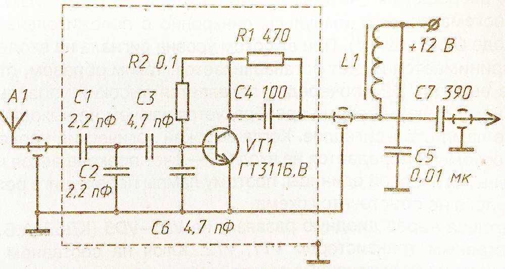 По схеме собирается усилитель, который устанавливается аналогично предыдущему варианту.