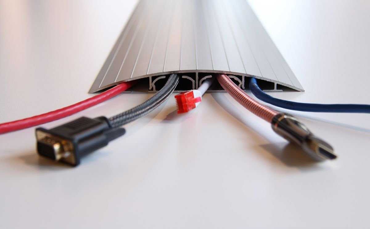 В магазинах представлен широкий ассортимент плинтусов для пола с отверстием для проводов (с кабель-каналом). Центральная часть такого плинтуса снимается, в нишу укладываются кабели, после съемный элемент возвращается на место. Работать с подобными плинтусами удобно, быстро, отсутствует пыль, грязь, не портится напольный материал.