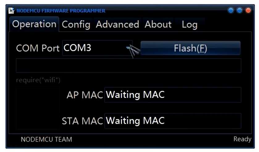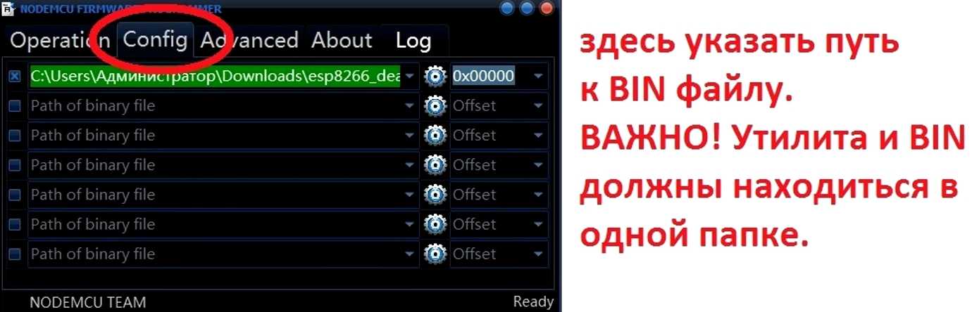 После скачивания и распаковки архива потребуется прошить плату и установить приложение на телефон. В папке вы найдете программу ESP8266Flasher. Запустите ее, выбирайте COM-порт и в разделе Config — прошивку (она находится по пути *\Wi-PWN-master\arduino\Wi-PWN). Теперь жмите Flash во вкладке Operation.
