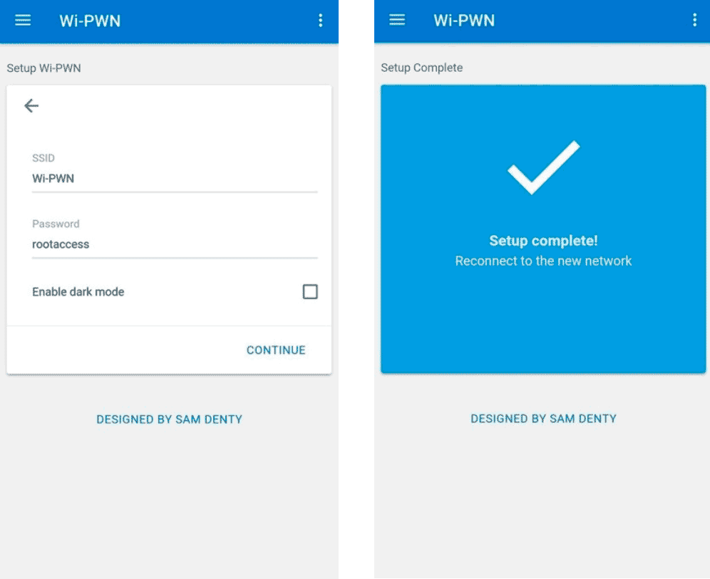 Рассмотрим аналогичную прошивку Wi-PWN , которую разработал Сэм Денти (samdenty99). Он улучшил творение Spacehuhn и добавил функции детектора деаутентификации, а также создал сопутствующее приложение для Android. В итоге использовать Wi-PWN удобнее, чем Deauther 2.0.