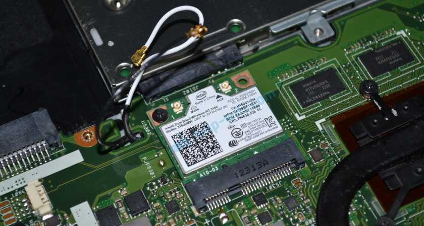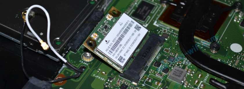 Видим Wi-Fi модуль, который подключен в порт Mini PCI Express на материнской плате ноутбука.