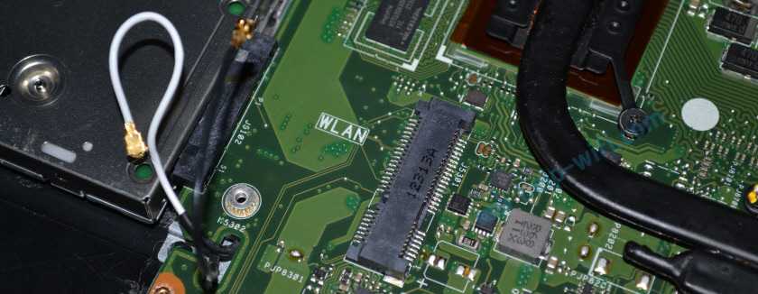 Под самим модулем видим надпись «WLAN» на материнской плате. Чтобы при установке нового не промахнуться