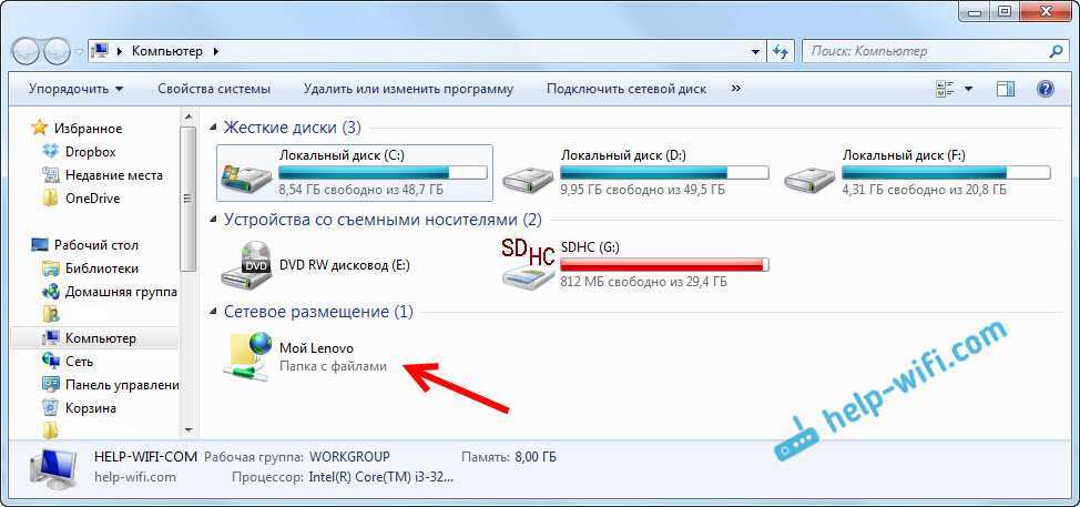 Когда вы захотите закинуть на телефон какую-то песню, или посмотреть фото, то достаточно включить «Удаленный доступ» на мобильном устройстве, и зайти в созданную нами папку.