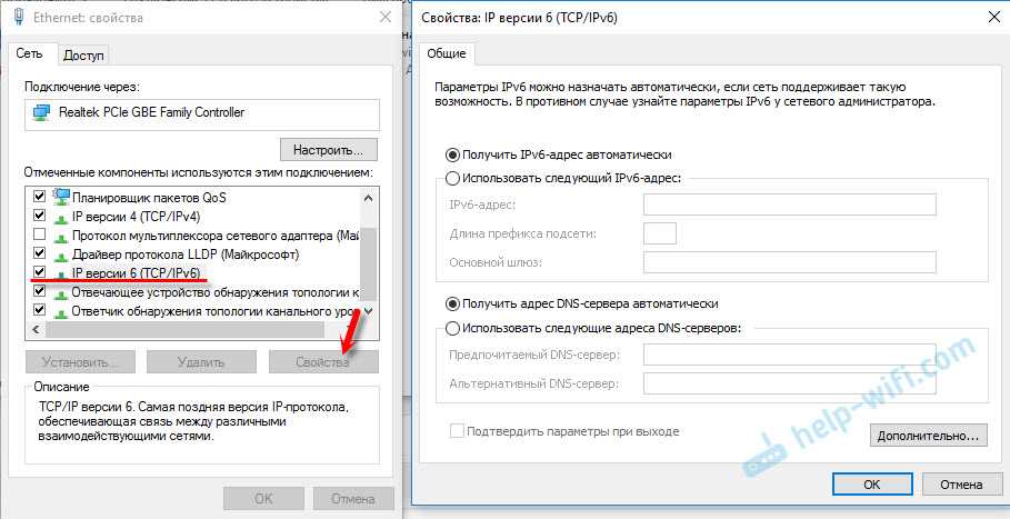 Выделите «IP версии 6 (TCP/IPv6)». Нажмите кнопку «Свойства».