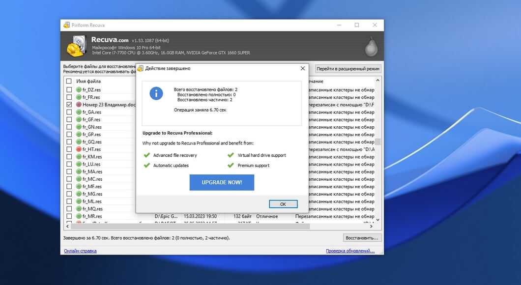 - Glary Undelete — хорошая программа на русском языке вернет файлы и данные.