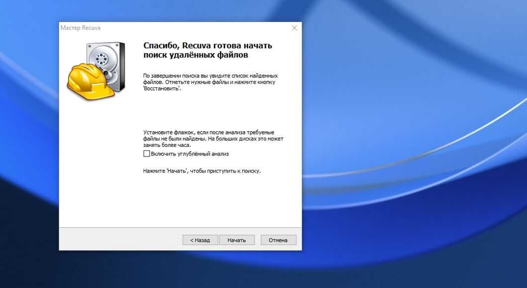 При углубленном сканировании процедура занимает намного больше времени, чем при быстрой проверке. Но при этом обеспечивается более тщательный анализ, который, скорее всего, позволит найти все нужные файлы.