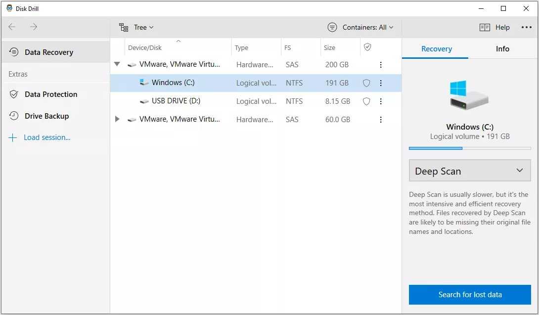 - Быстрое/глубокое сканирование, которое не отличается от аналогичных решений у Disk Drill и Stellar Data Recovery.