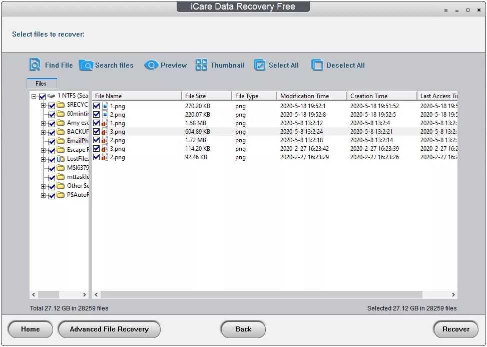 iCare Data Recovery Free имеет два варианта сканирования. Можно выбирать быстрое и глубокое сканирование. Второй вариант быстрее всего найдет больше удаленных файлов для восстановления. Первый вариант оперативного восстановления, по идее, должен занять меньше времени, если такового в обрез.