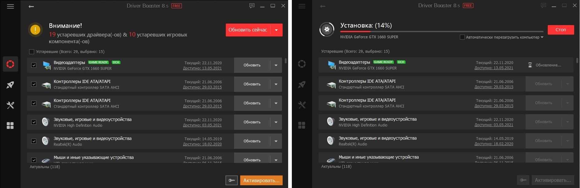 - полностью бесплатная: скорость скачивания, количество обновляемых драйверов и пр. моменты никак не ограничены!