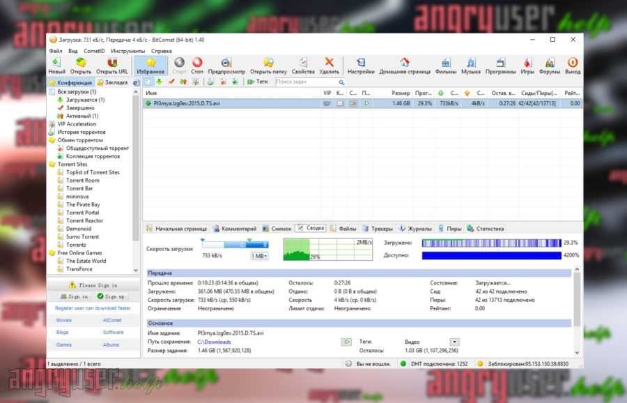 Именно за счет скачивания одновременно со многих источников, достигается высокая скорость загрузки файла.