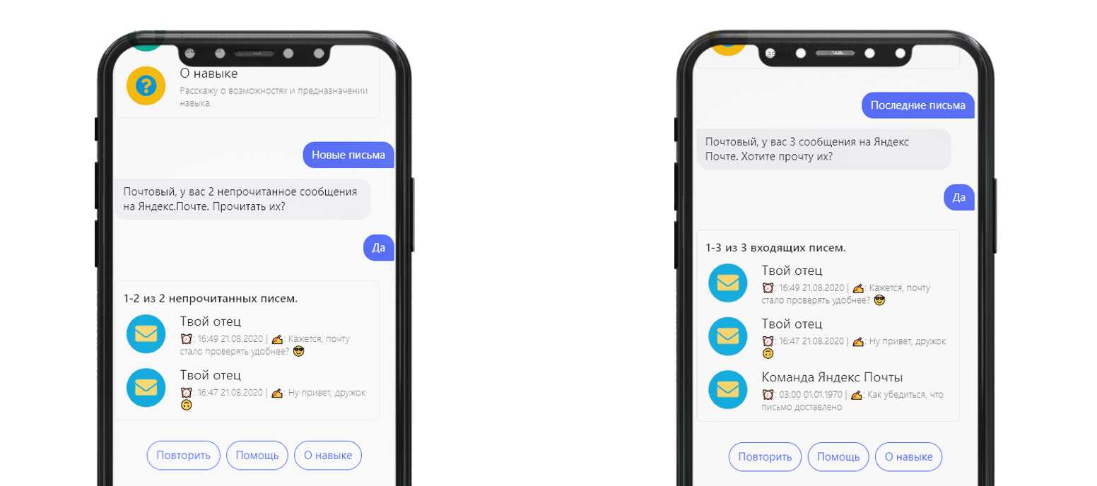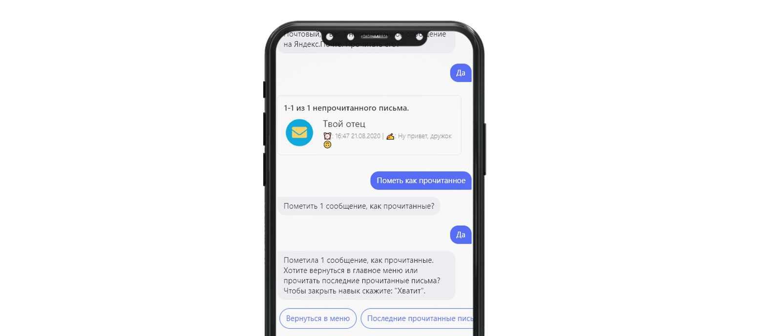 «Алиса, спроси у Почтового помощника есть ли новые письма?» и навык сразу же ответит.