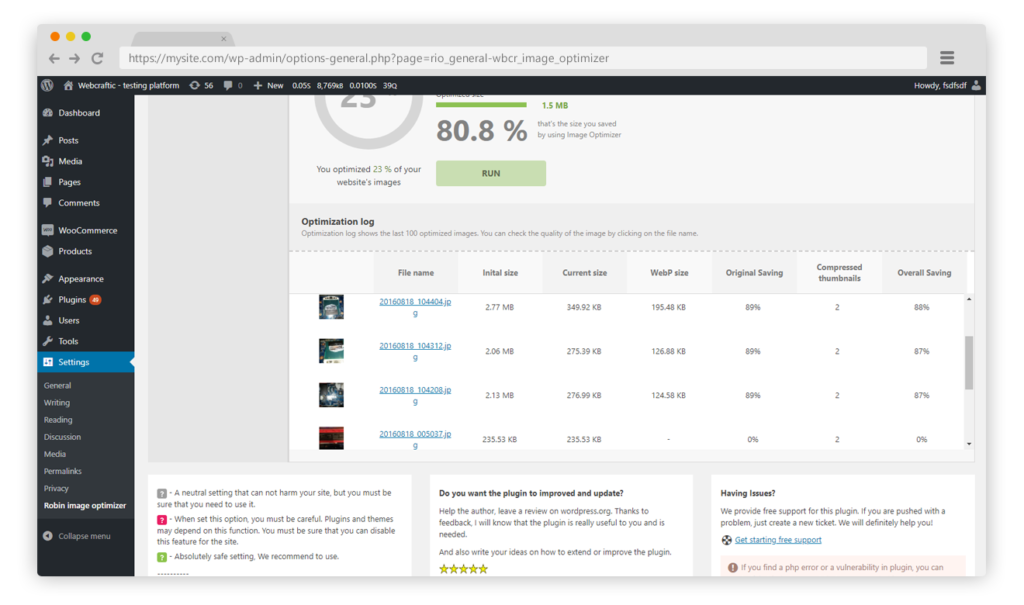 Такие плагины автоматически сокращают размер загружаемых изображений на 40–80%, практически не влияя на их качество (удаляются EXIF-данные и некоторые цвета).